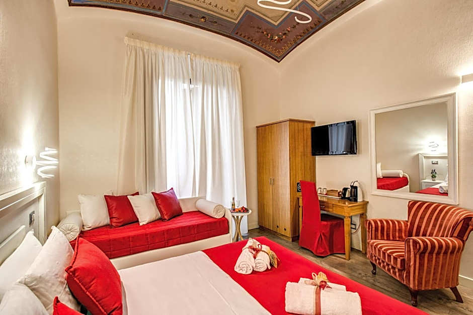 Air-conditioned room with free Wi-Fi, an LCD satellite TV and private bathroom. It features parquet floors and some boast frescoed ceilings.